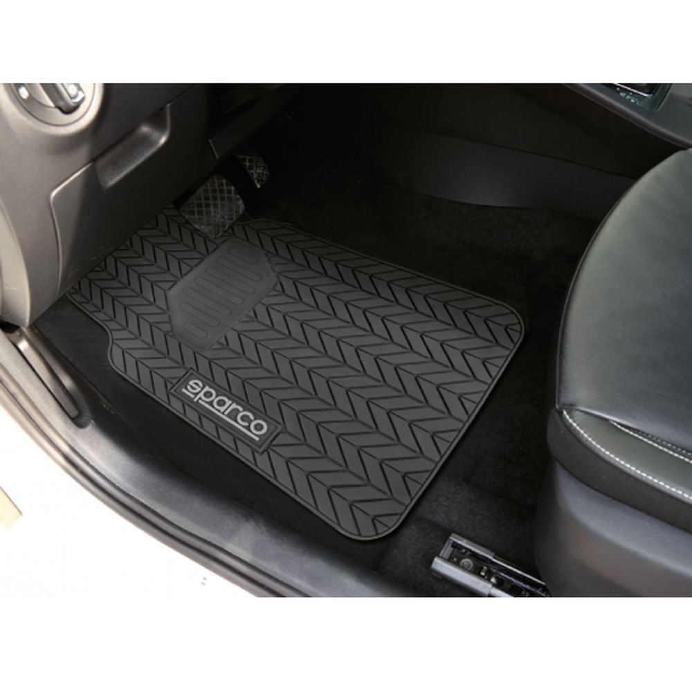 4 tapis de sol PVC noirs Sparco (3 parties) offrent une protection robuste et antidérapante pour vos ateliers, garages et zones de travail, assurant sécurité et durabilité au quotidien.