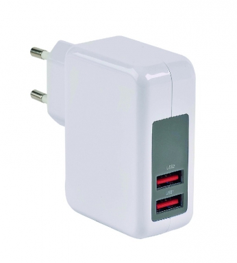 CHARGEUR USB SUR SECTEUR 230V – 5V/2.4A (SMART CHARGE) + 1A.