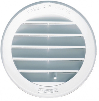 GRILLE AÉRATION ENCASTRÉE RONDE PLAST. BLANC AV. MOUST. Ø INT. 94 MM S = 0-35 CM2.